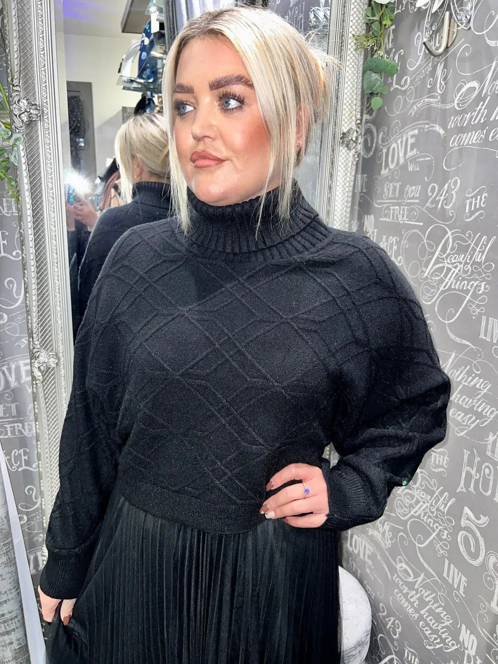 Step out in confidence with the Priya two piece. The flowing dress fits beautifully underneath a stunning jumper.  These are separate pieces so can be also worn separately, the dress has a stretch vest bodice and tulle layered pleated skirt whereas the jumper will keep your look cosy and warm with its soft feel and embossed pattern its sure to turn heads overall this outfit will create a figure-flattering silhouette.  Whether dressing up or down, this versatile set will elevate your look and have you feeling your best