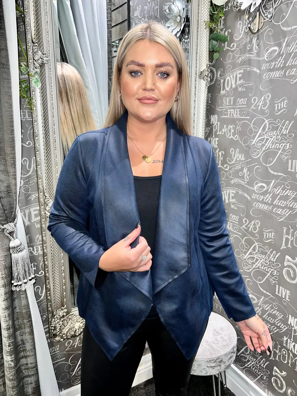 TERRI SHORT SNAKESKIN DESIGN COAT - NAVY