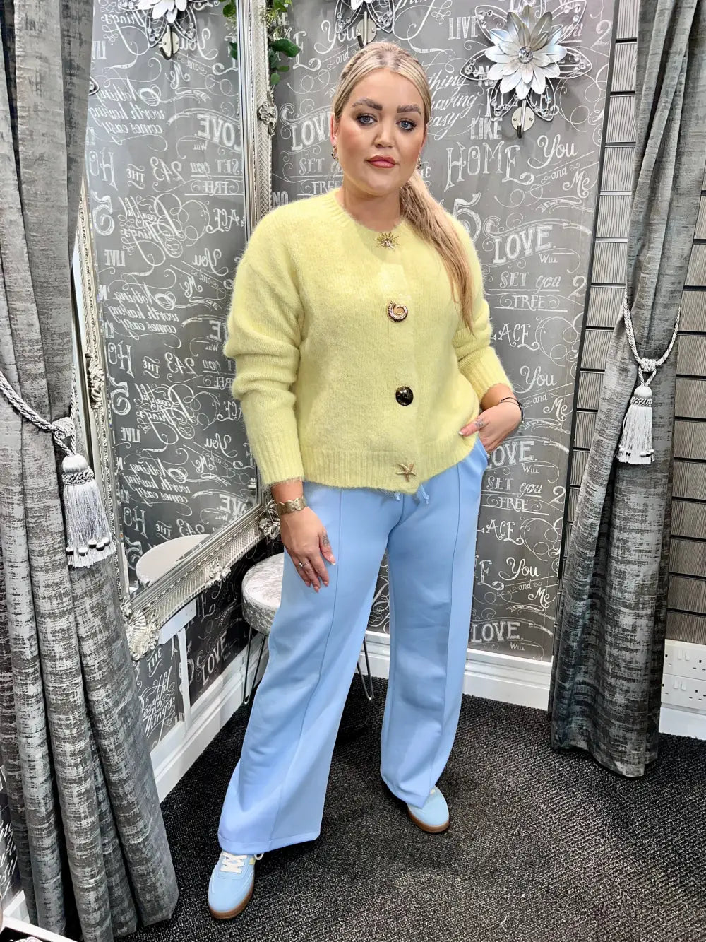 OLIVIA GOLD BUTTON DESIGN CARDIGAN - LEMON