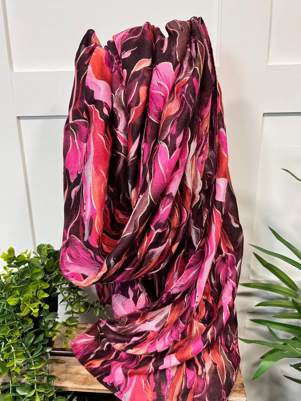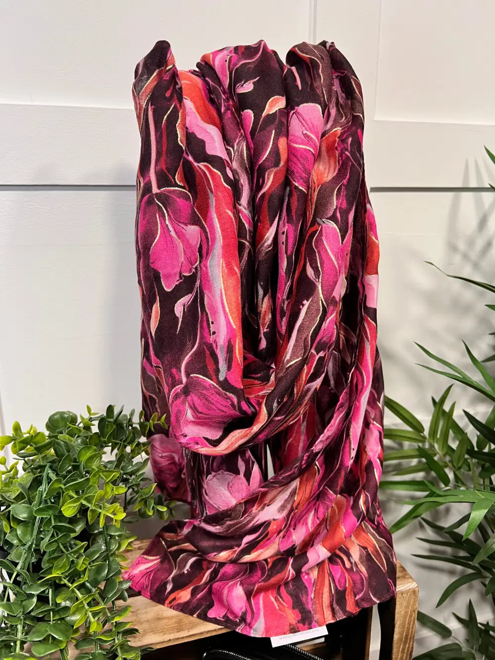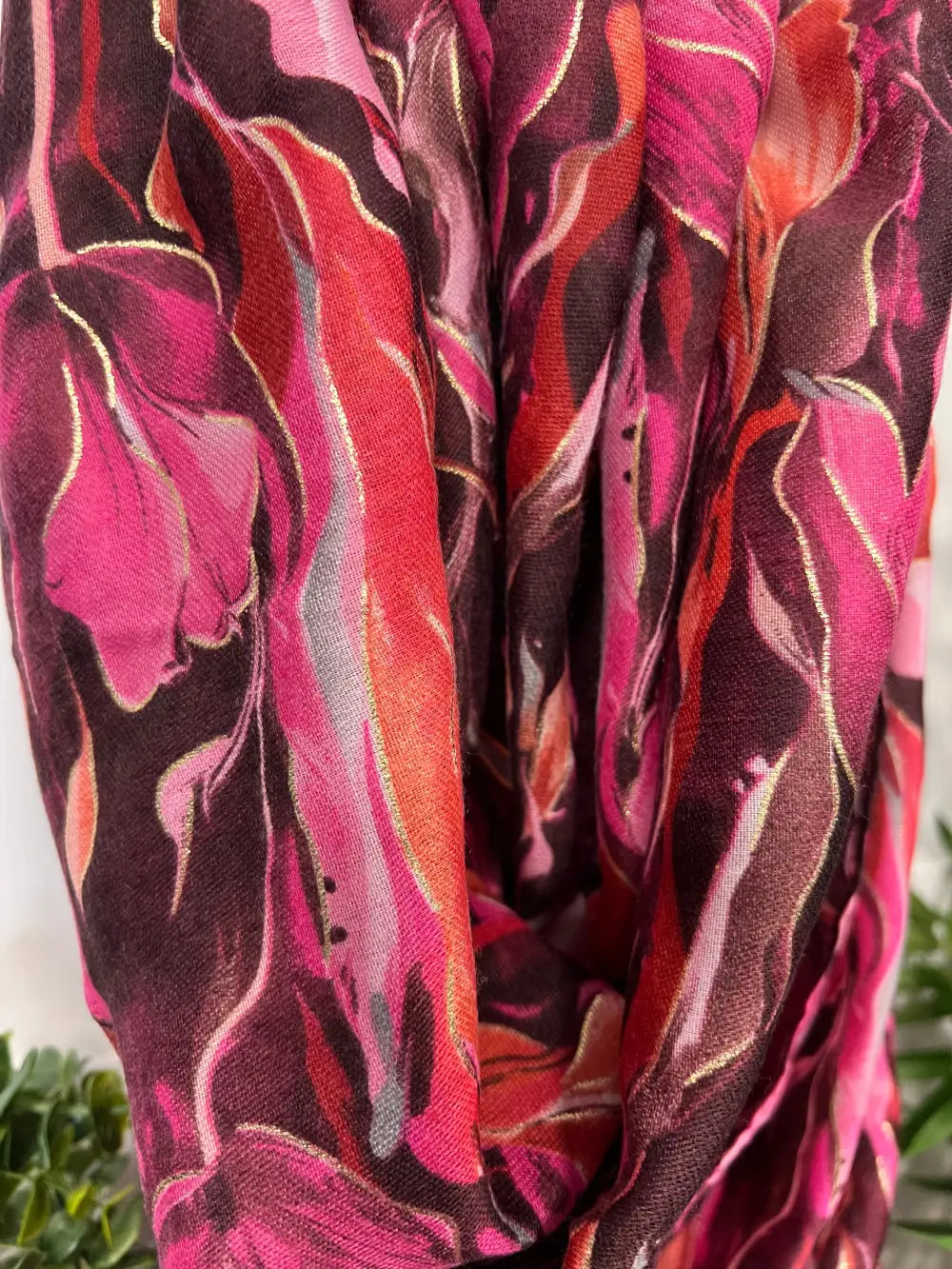 Swirl Leaf Foil Scarf PINK - Thin Scarf