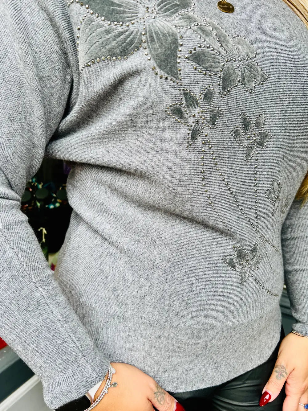 The Aston Velvet Floral Jumper is the perfect fusion of comfort and elegance. The plush velvet floral design lends a touch of opulence, adding a romantic, feminine flair. This stunning batwing knit features not only a floral design but a ribbed texture knit that will elevate any outfit. Slip it on with your favourite jeans and ankle boots for a chic daytime look, or dress it up with tailored trousers and heels for a night out.