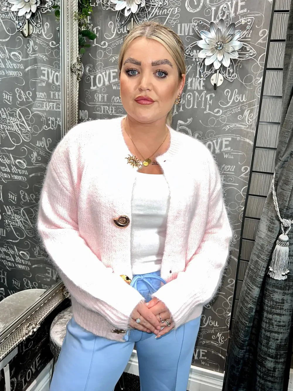 OLIVIA GOLD BUTTON DESIGN CARDIGAN - LIGHT PINK