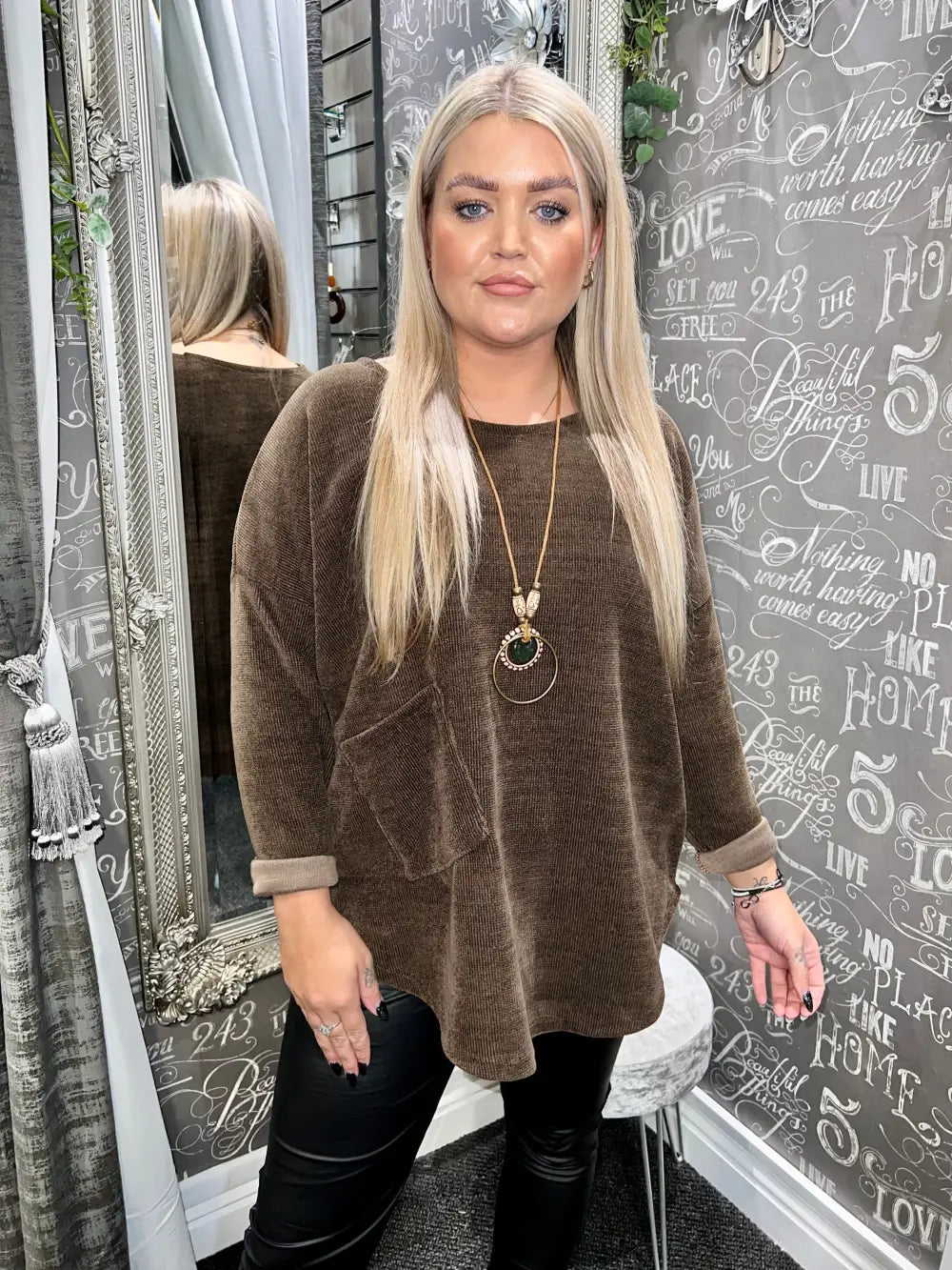 With an added unique touch there is a pocket on the front, giving it a bit of flair and functionality. Plus, the included necklace adds a subtle sparkle that effortlessly elevates your look. Whether you're pairing it with your favourite jeans or comfy leggings, the Rosie Top is sure to become a staple in your wardrobe. Grab yours today and experience the ultimate blend of style and comfort!